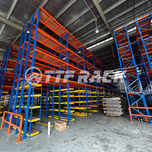 The top heavy-duty shelving rack is designed to hold pallets securely, featuring added safety boards to ensure maximum protection for inventory. Our shelving racks are able to hold up loads up to 1000 KG UDL/LEVEL.