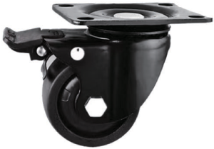 KOMTEC Light Duty Top Plate Castor C/W Black Rubber Wheel (Roller Bearing)