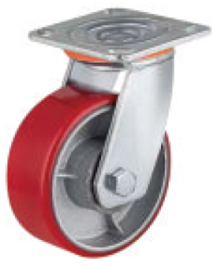 KOMTEC Heavy Duty Top Plate Castor C/W Flat Red PU Wheel (Double Ball Bearing)