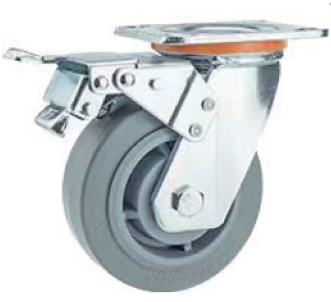 KOMTEC Heavy Duty Top Plate Castor C/W Grey Rubber Wheel (Double Ball Bearing)
