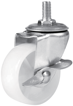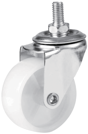 KOMTEC Light Duty M12 Thread Stem Castor C/W White PP Wheel (Plain Bearing)