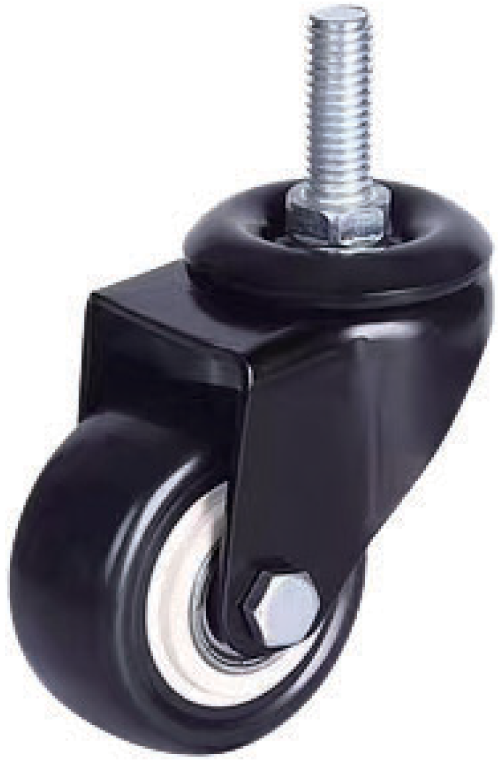 KOMTEC Medium Duty M12 Thread Stem Castor C/W Black PVC Wheel (Double Ball Bearing)
