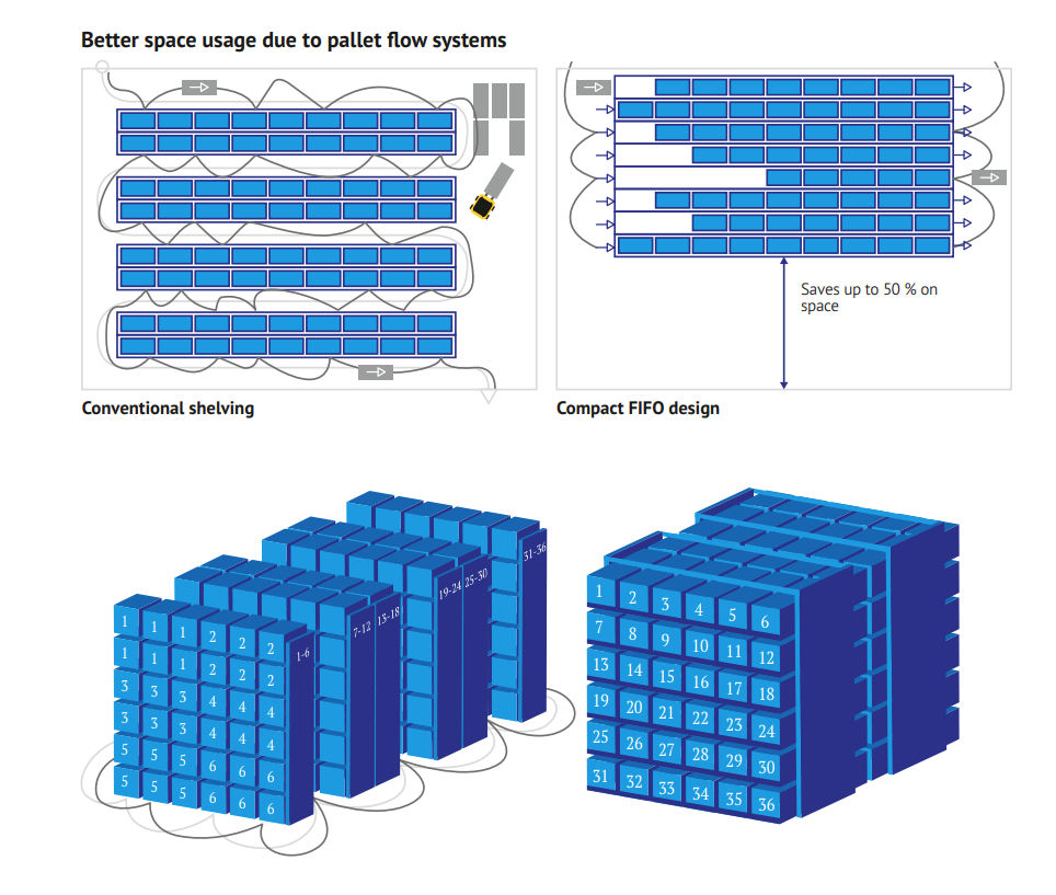 It enables seamless inventory rotation and helps reduce errors, making it an excellent solution for industries that prioritize space maximization and operational efficiency.